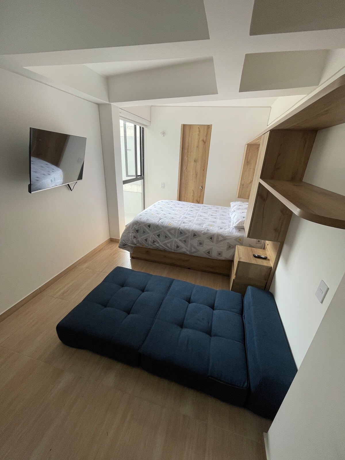 Loft-style studio apartment with 24/7 access, located on the 11th floor with an incredible 180° view of the city, natural light, modern, and cozy. Strategically situated in the Chapinero Central sector in a new building, very close to banks, pharmacies, supermarkets, shopping centers, restaurants in Zona G and Zona T, Centro Internacional, and La Candelaria, bars, theaters, museums, El Campin Stadium and Coliseum, parks, etc.
