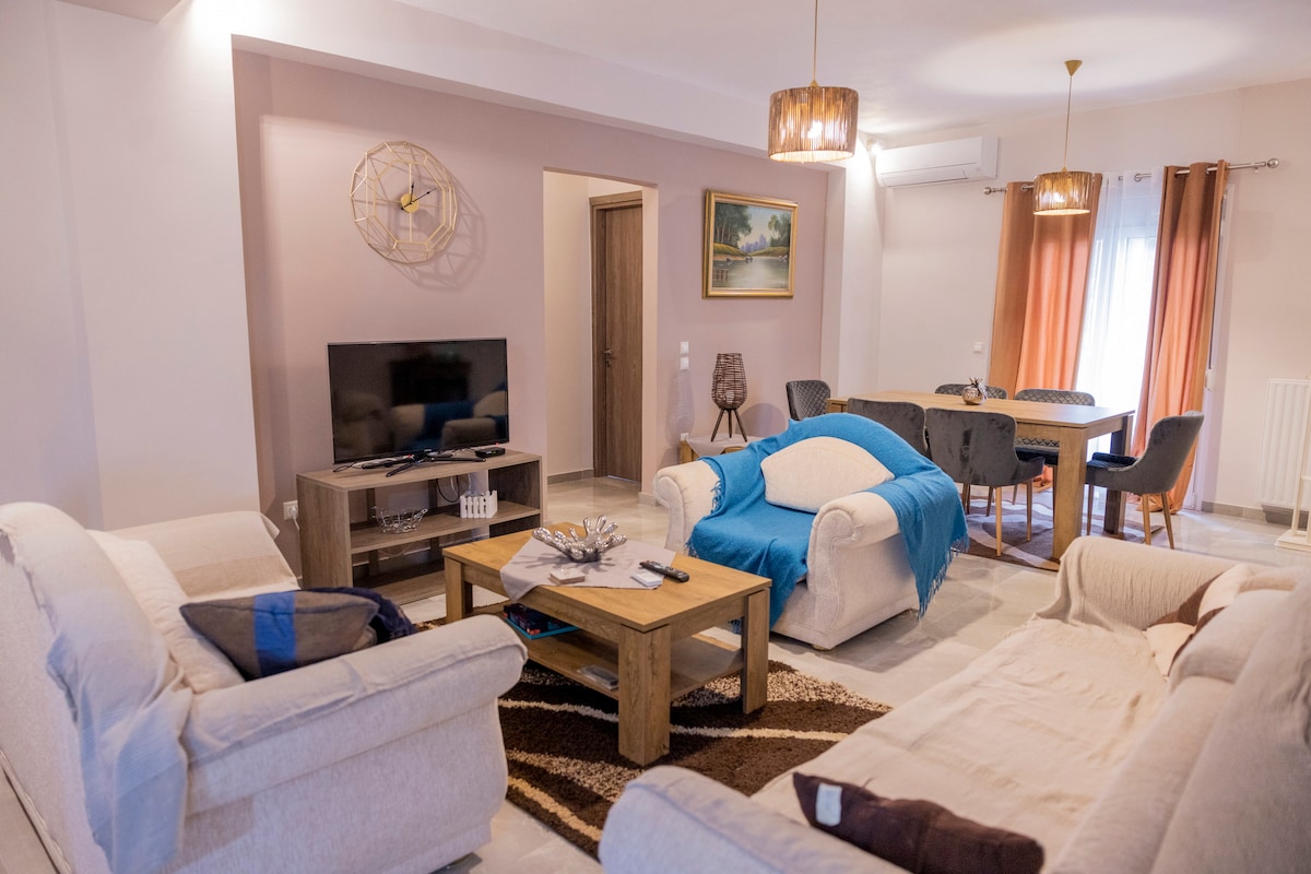Live in a freshly renovated apartment in the center of Meteora-Kalambaka and enjoy the magnificent neighborhoods of Kastraki and Meteora. Experience the impressive towering rocks and ancient clifftop monasteries. A quiet, safe, and strategical location to explore Meteora. On foot! Cafes, restaurants or famous sights, there are all there for you to mix and match as you like, creating the experience that suits you best! The apartment's freshly renovated spaces can comfortably accommodate 5 adults.