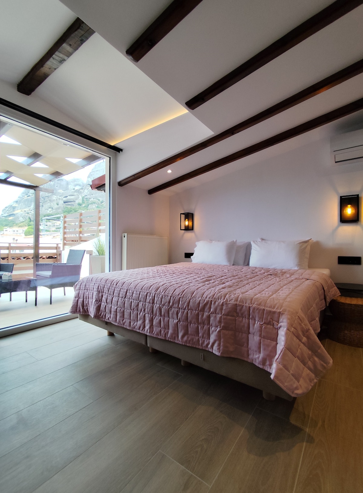 METEORA HARMONY HOUSE is a 120 sq mt guesthouse dedicated to rejuvenating accommodation and eco-friendly hosting. The interior was specially designed by one of the leading research companies “Healing Architecture” to offer our guests feelings of calmness and inspiration through the feng shui atmosphere, the gentle colours, the serene sounds, the hidden / dimmered lighting, the minimalism, the comfort and delicate aesthetics.. but most of all our warm care that comes from the heart.