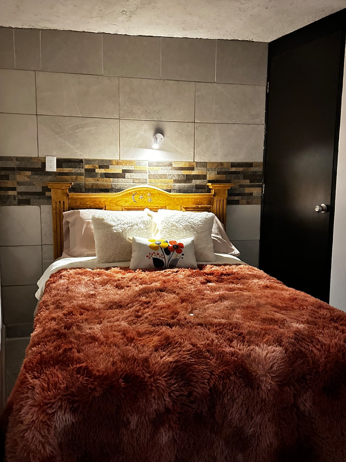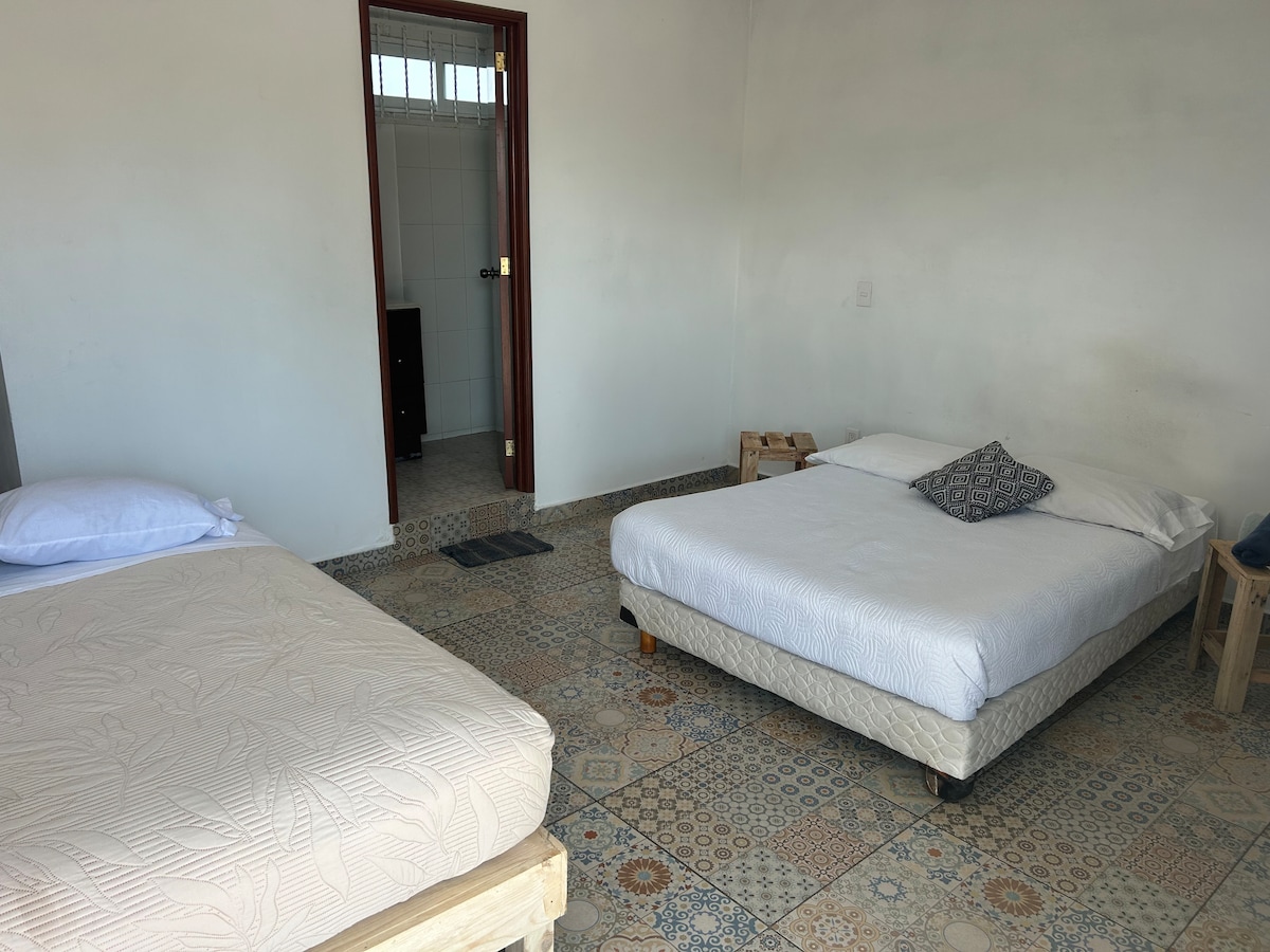 Habitación acogedora, entrada independiente, baño y un pequeño balcón, ServiBar microndas , cafetera plancha, cama matrimonial closet, estacionamiento en privada Wi-Fi, toallas cobertores lo necesario para descansar