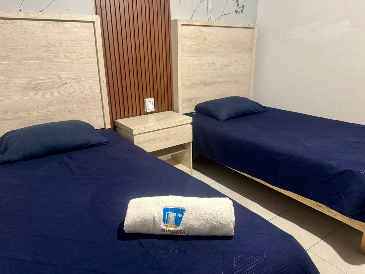 En Hoja Santa Hospedaje contamos con esta habitación moderna y comoda con cama matrimonial, TV y excelente iluminación. 🚿 Baño completo privado con regadera. ☕ Incluye cafetera, toallas y un ambiente cómodo y tranquilo, ideal para descansar.