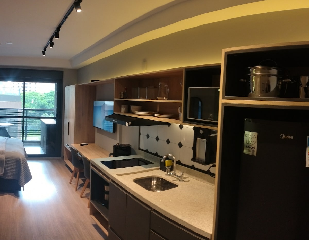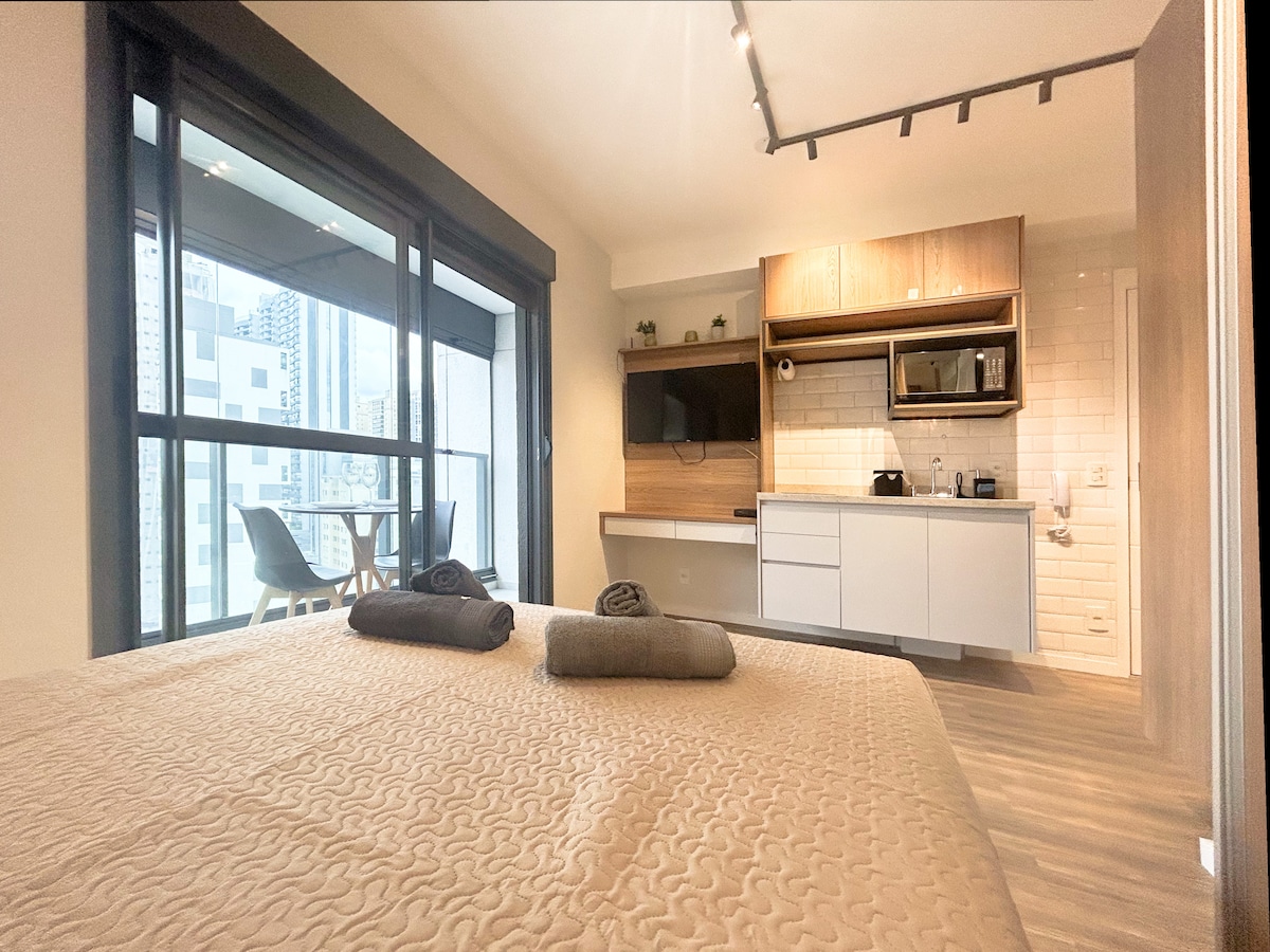 Este studio foi projetado para quem busca estilo, conforto e praticidade. • Design Contemporâneo. • Cozinha Completa. • Área de Trabalho: Uma mesa funcional para quem precisa de um espaço para trabalhar ou estudar. Ideal para executivos, casais ou viajantes que buscam sofisticação e praticidade em São Paulo! Aviso: O prédio é de nova implantação, e podem ocorrer reformas pontuais em alguns apartamentos, com possíveis ruídos durante o horário comercial.
