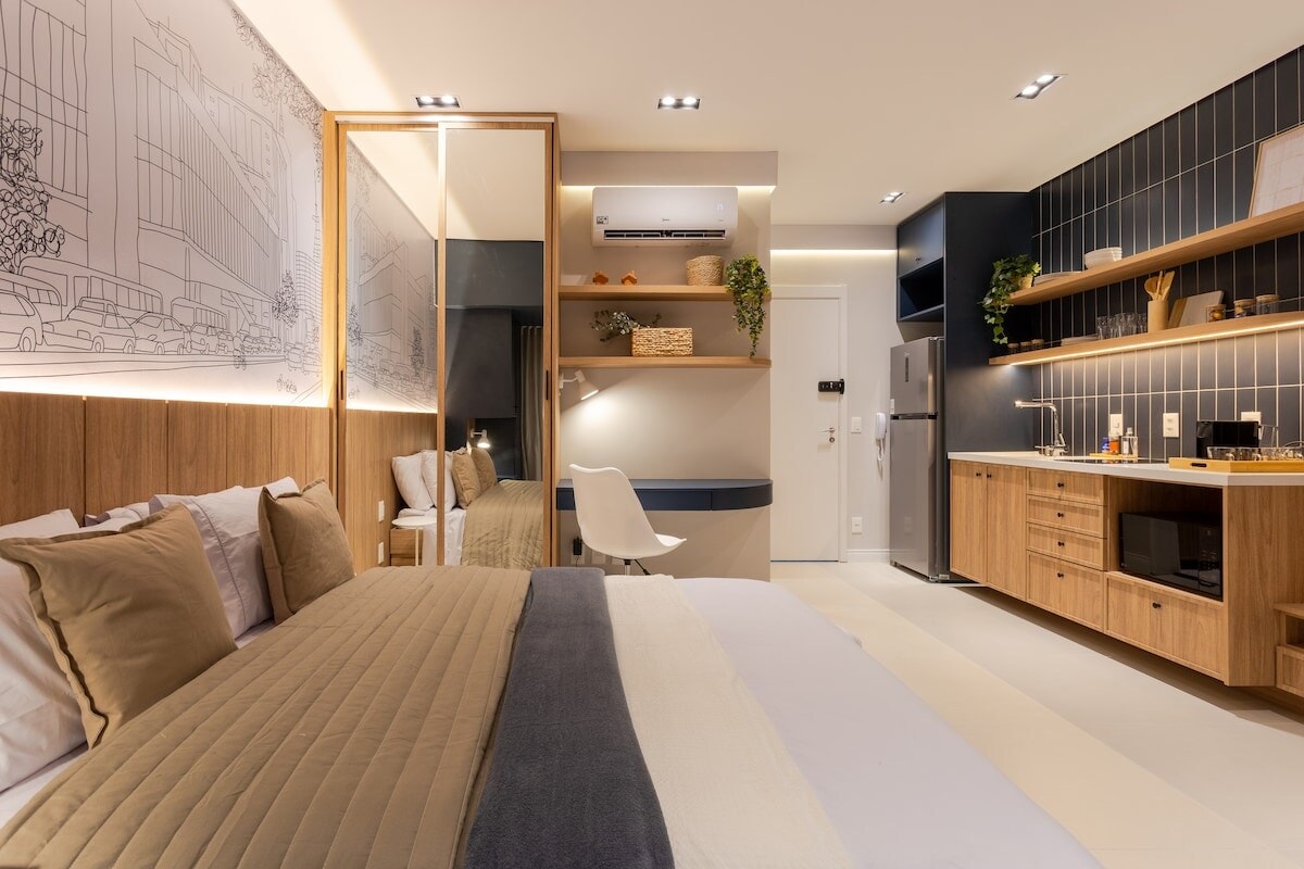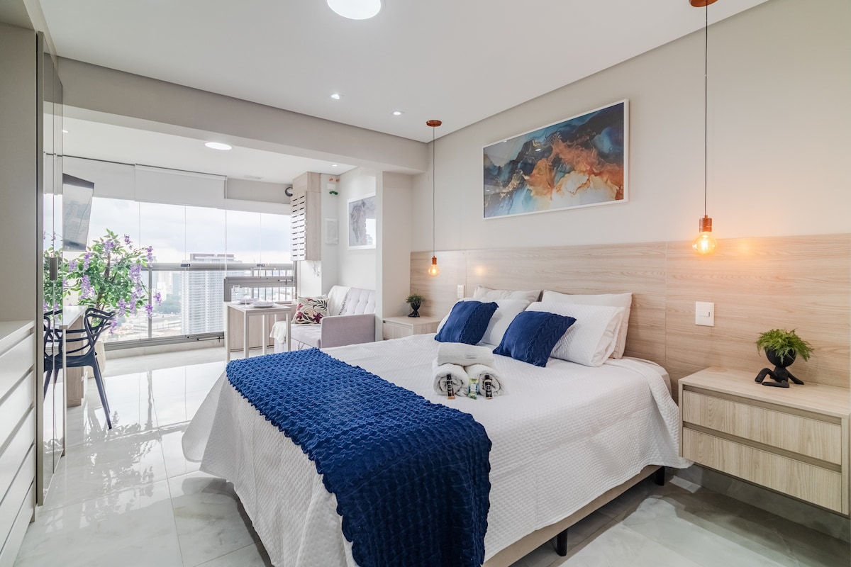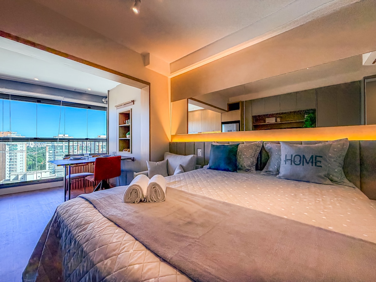 Descubra um refúgio elegante e completo no Brooklin, um dos bairros mais desejados de São Paulo. A apenas 2 minutos da Estação Brooklin (Linha Lilás), você estará cercado por restaurantes, cafés e todo o dinamismo da região da Berrini. Aproveite a estrutura incrível do prédio com piscina, academia, coworking e muito mais na regiao mais central de Sao Paulo. Um studio moderno, pensado nos mínimos detalhes para oferecer uma estadia prática, confortável e inesquecível.