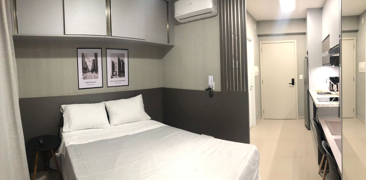 Studio moderno no AirBrooklin (prédio dd algo padrão) ideal para quem busca praticidade e conforto no coração do Brooklin, bem próximo à Berrini. Ao lado metrô e em frente ao Carrefour 24 horas, com garagem, enxoval de primeira linha (Teka hotelaria), cozinha equipada, Wi-Fi rápido e ambiente silencioso. Perfeito para trabalho ou lazer. Sinta-se em casa com toda a estrutura de um condomínio completo e seguro. Reserve e aproveite São Paulo com estilo.