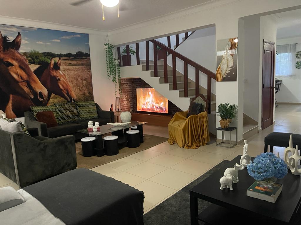 Vive la experiencia de hospedarte en el exclusivo Residencial Metro Country Club, en esta elegante villa tipo townhouse de dos niveles, totalmente equipada para tu comodidad. Dispone de 3 habitaciones espaciosas, 2.5 baños, acogedora sala y comedor, cocina práctica y todas las amenidades que necesitas para sentirte como en casa. Podrás refrescarte en la piscina compartida con solo 8 villas, organizar un asado en el área de BBQ, o relajarte viendo tus series favoritas en la TV con cable y DVD.