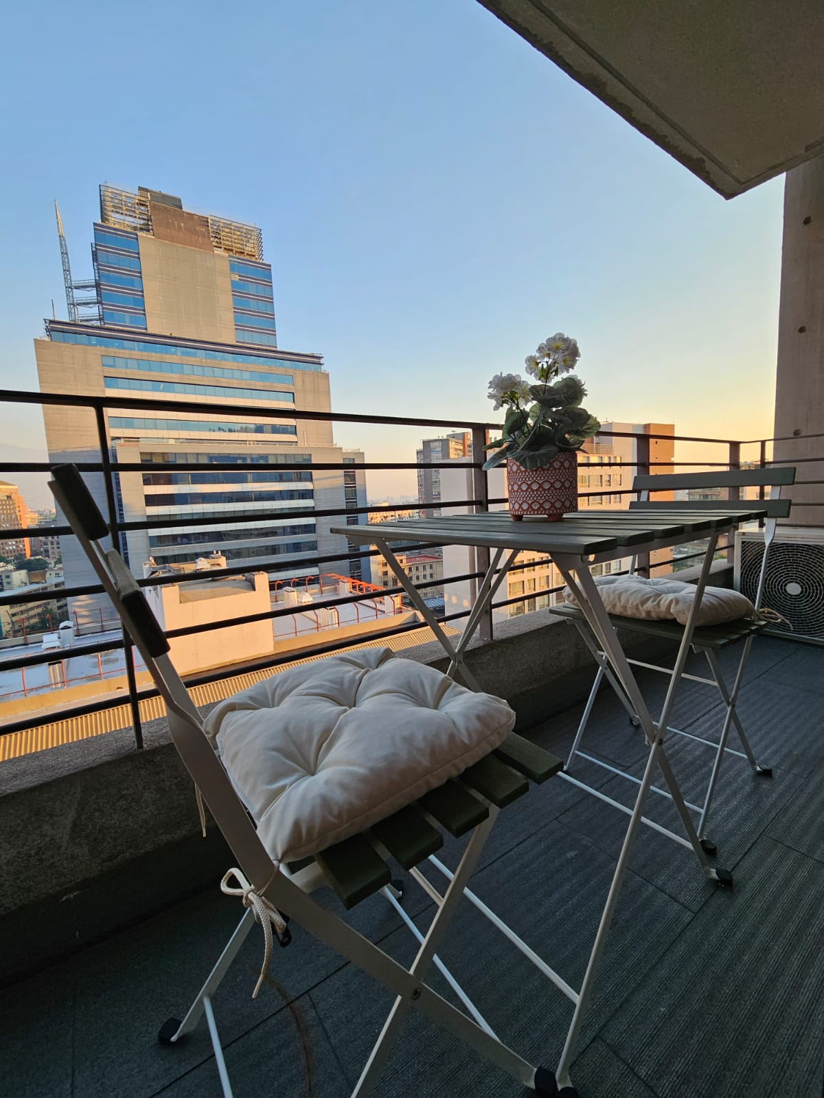 Moderno y acogedor departamento con aire acondicionado en el corazón de Santiago. A pasos del metro y del Centro Histórico, rodeado de museos, mercados y restaurantes. Cama king, cocina equipada, balcón y wifi rápido, ideal para viajes o estadías largas. Edificio seguro con conserje 24/7. Atención personalizada, check-in flexible y recomendaciones locales para que disfrutes la ciudad como un residente, con comodidad y tranquilidad.