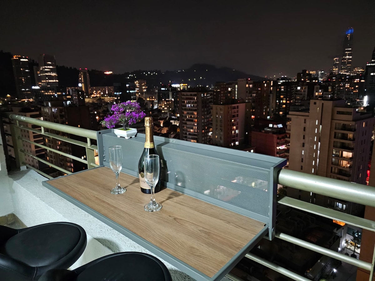 Departamento recientemente remodelado a tan solo metros de Mall Costanera Center y 50 mts de estación de metro Los Leones. Se encuentra en una calle con excelente vida nocturna, cercano a restaurantes, supermercados, clínicas, etc. Totalmente equipado para 3 personas.