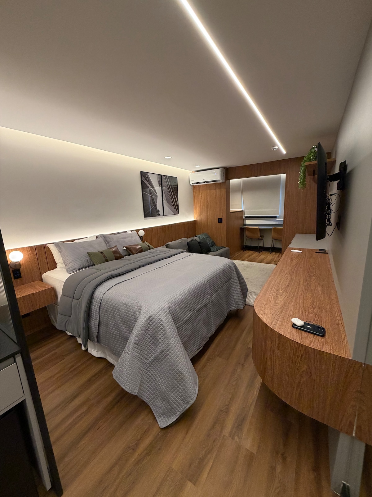 Este lindo studio tem uma ótima localização na Consolação, em uma rua limpa e bem tranquila. Sua decoração moderna e planejada cria um ambiente sofisticado. A iluminação e os detalhes dourados no banheiro adicionam um toque de elegância. O espelho de corpo inteiro e os eletrodomésticos embutidos dão um charme especial ao apartamento. Em um raio 500m de distância, você encontrará uma estação de metrô, padaria, mercado e o shopping Frei Caneca, proporcionando conveniência e estilo em um só lugar