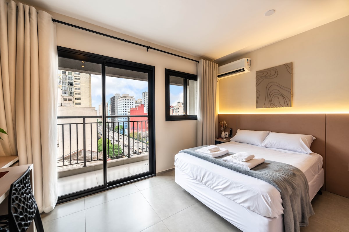 Studio projetado pela arquiteta Ketlyn Melero, planta aberta e moderna no 28º andar do iconico Edifício Copan com vista panorâmica, proporcionando o cenário ideal para sua estadia se tornar inesquecível. O Copan é um dos mais importantes e emblemáticos edifícios da cidade de São Paulo. É um símbolo da arquitetura moderna brasileira, concebido pelo arquiteto Oscar Niemeyer.