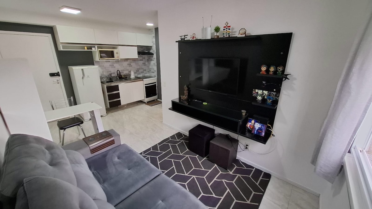 Experience One Eleven in Vila Olimpia. This modern apartment features large windows with breathtaking city views and natural light. The unit boasts 600 Mbps internet and a 4K HD TV. For total comfort, it has a Hot/Cold AC system: 27,000 BTU/h unit in the living room and 10,000 BTU/h in the bedroom. The bedroom is quiet and dark for a restful sleep. Impeccably maintained, you’ll be walking distance to top restaurants and business hubs—a safe, upscale retreat with a stunning urban backdrop.