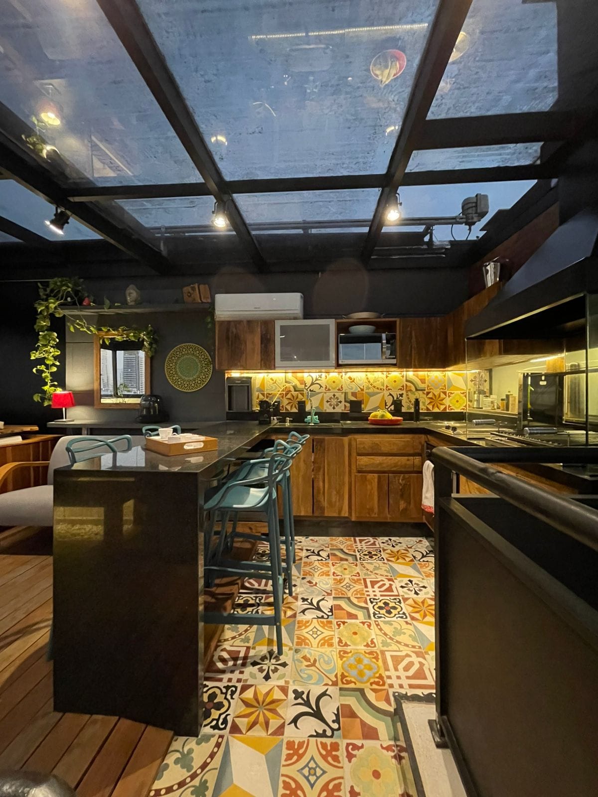 Cobertura deslumbrante com a melhor vista da cidade de São Paulo. Equipado com um terraço privativo com Sauna de vidro com vista panorâmica, jacuzzi super aquecida com hidromassagem e iluminação para cromoterapia e um jardim com lindas plantas para um tempo de relaxamento inesquecível. Não há nada igual disponível para uso em São Paulo. O ambiente de cozinha e estar todo de vidro, teto de madeira e equipado com projeto de alta potência para sua sessão de cinema privativo com pipoqueira.