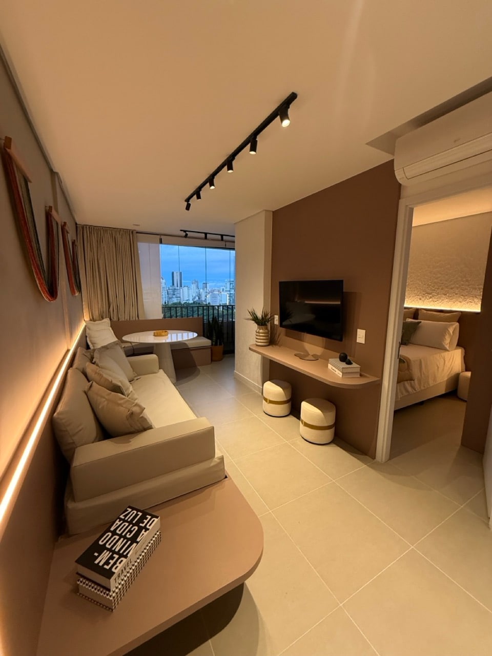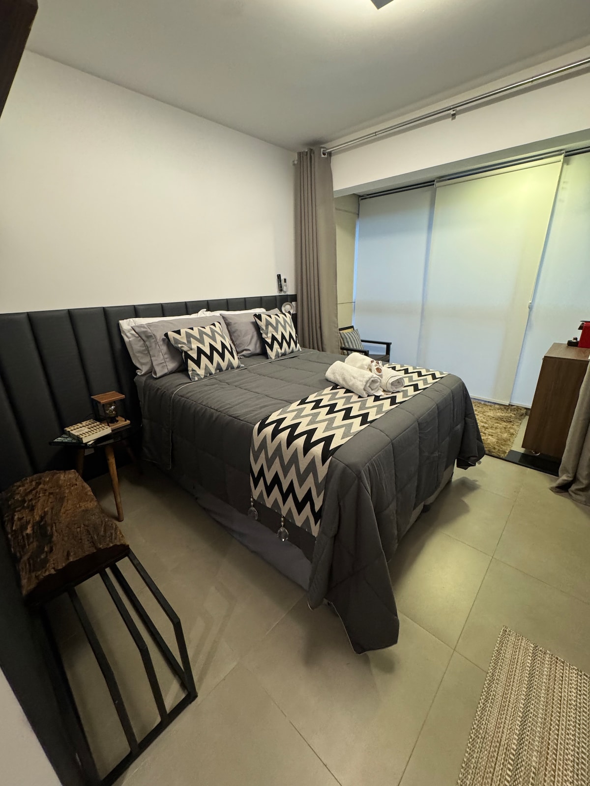 Apto 44m Nascente Quarto: Cama Queen + enxoval completo/Ar Condicion/Tv 50"/Guarda roupa/Cortina black out/corta luz/Proteção de tela na janela/Espelho Banheiro: Secador de Cabelo Sala: Ar Condicion/Sofá Cama 1.38 x 2.12m/Wifi 590mgbt/Tv 65"/Área de trabalho + cadeira/Mesa com cadeiras para refeições Cozinha: Geladeira/Purificador de água/Cooktop/Forno/Microondas/Air Fryer/Sanduicheira/Liquidificador/Panelas/Talheres/Ferro e tábua de passar/Vaporeto Extintor de Incêndio Varanda: Proteção de tela