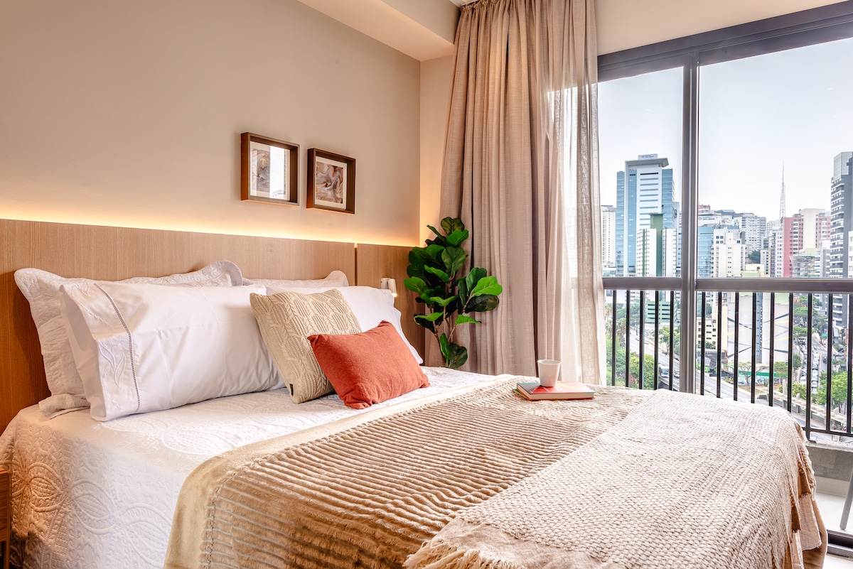 Curta uma experiência incrível em um aconchegante Studio novinho. Studio muito bem equipado para estadia de um casal, com todos os utensílios novos. Ótima localização, perto do Shopping Frei Caneca, da Rua Augusta , Rua Consolação, de Hospitais renomados. Perto do Metro Higienópolis-Mackenzie para fácil locomoção. Caminhando para a Av. Paulista são apenas 12 minutos. O Espaço é Ideal para quem vem a negócios (coworking no prédio), turismo ou a procura dos hospitais e faculdades da região.