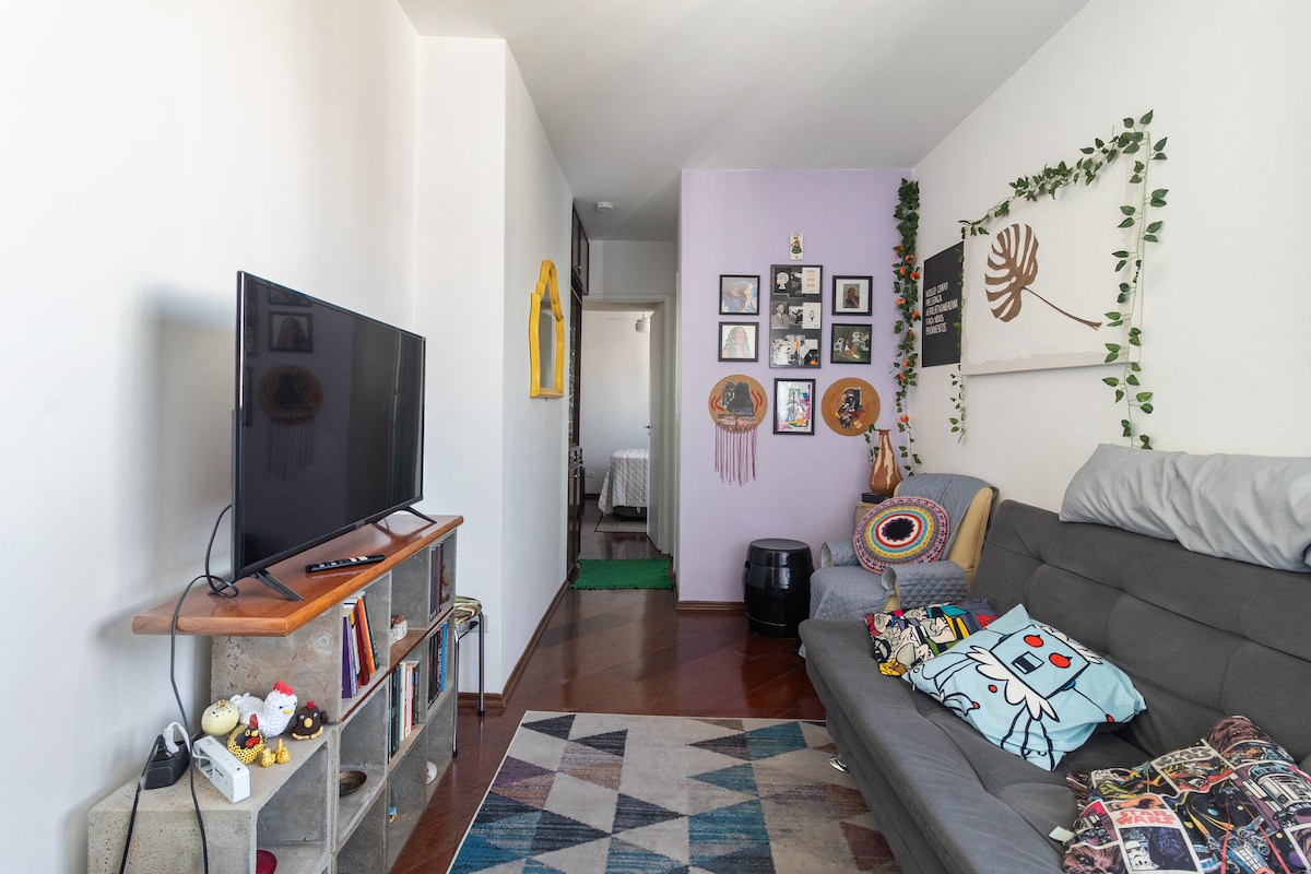 Apto. 60m2 c/varanda, 2 quartos com camas de casal, 1 sofá cama, ar condicionado inteligente frio/quente, Wi-Fi, espaço de escritório, com 2 Smart Tv's todos canais, Netflix, Globoplay, Disney +, fechadura digital para self check in. Residencial Ca'd'oro, piscina, quadra poliesportiva, parquinho, próximo ao shopping frei caneca, rua augusta e av paulista, metrô Higienópolis/Mackenzie, 1 vaga de garagem e portaria 24hrs.