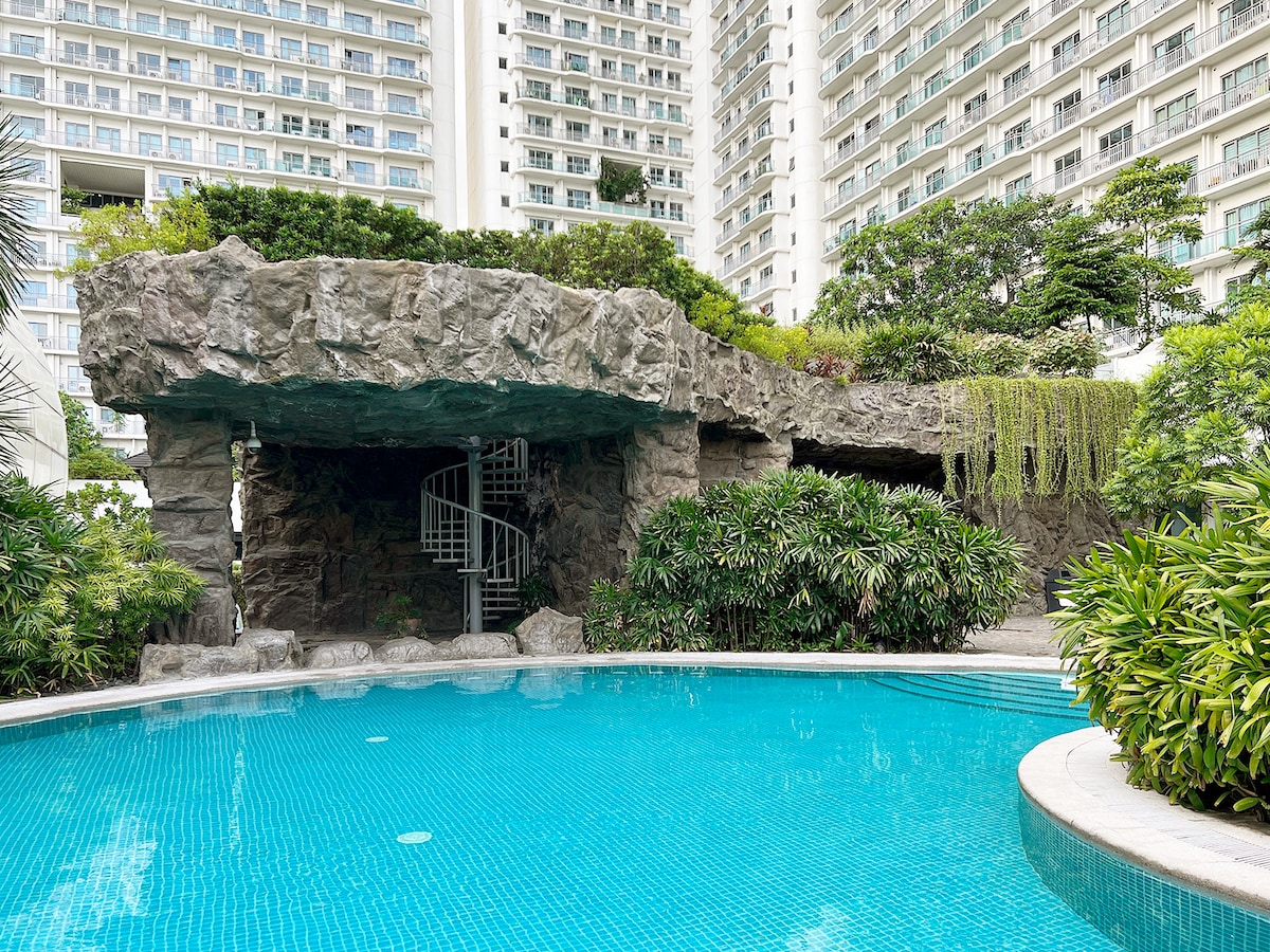 Welcome to a Unique Getaway in Uptown Parksuites BGC! Awarded as Airbnb’s Top 1% and Guest Favorite! Stay in a deluxe 1-bedroom with a balcony offering stunning city views. Located in the heart of Uptown Bonifacio, steps from international dining, shopping, and entertainment. Enjoy resort-style amenities like pools and a jacuzzi. For convenience, Landers Superstore, cafes, and more are right downstairs. Explore Uptown Mall and the first Japanese-themed "Mitsukoshi" mall just across the street.