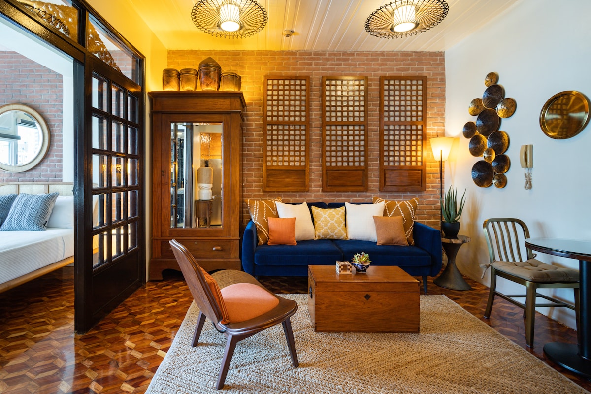 Perfectly situated in the heart of the Poblacion, Makati Restaurant and Entertainment District, our unit is located on the 5th floor of a boutique condo building w/ 24 hour security. Our 1br boasts views, a 50s mid-century modern interior and amenities including a 55" tv, Netflix, 300 Mbps, w full kitchen. Walk to nearby bars, casual restaurants, and fine dining. Experience art and culture! The perfect destination for couples, solo adventurers, a business traveler, short trips, and vacation!