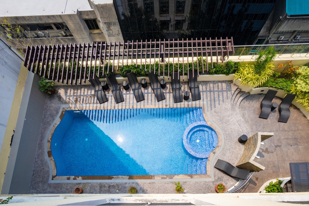 马卡蒂现代泳池面向1卧室,带阳台+ Netflix
