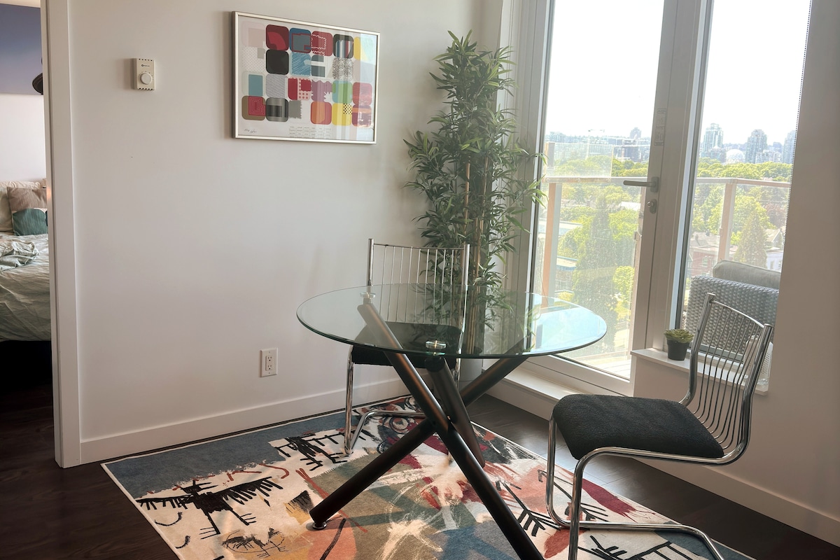 Yaletown 1卧室,可欣赏美景,免费停车和空调