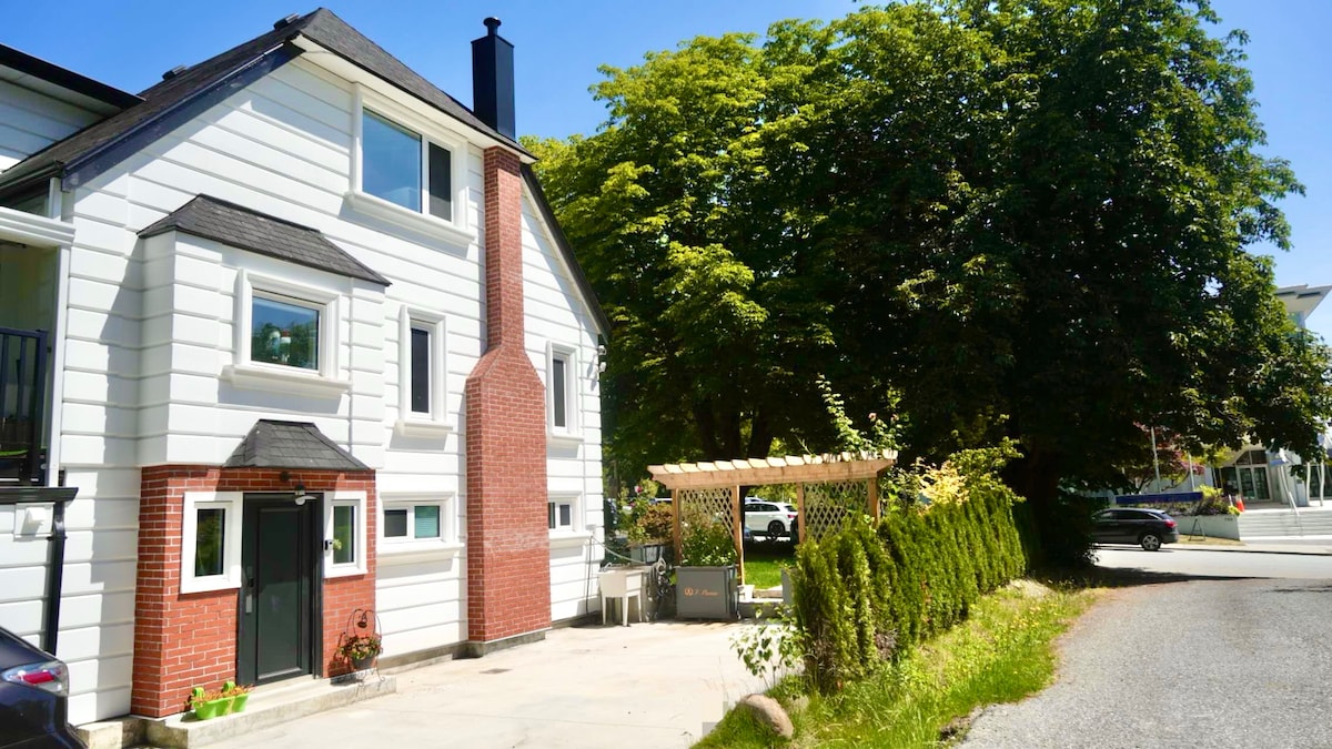 Welcome to our beautiful and spacious guest house. 1000 sqft of modern design with a comfortable, bright, living space with 2-bedroom, new modern 5 piece kitchen, living room, office space ,ensuite laundry, TV with Netflix, private yard, free parking and EV charger. The home is private & separate from the main house, Very safe and central neighborhoods in North Vancouver, close to many amenities, mountains, hikes, Lonsdale Quay, kids’ parks, public transportation & much more!