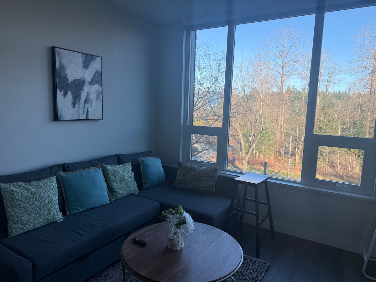 West Coast contemporary forest 1 bed & 1 bath suite situated at the Northern most point of Lynn Valley Road, adjacent to both the Lynn Headwaters & the Baden Powell trails. Mountain Biker or Trail Hiker's dream location with nature at your doorstep. Listen to Lynn Creek while staring out through the tree's, it is the epitome of relaxation & West Coast living with spa like amenities. Cafe/Bakery across the street and parks all around. Steps to transit and easy access to Downtown Vancouver.