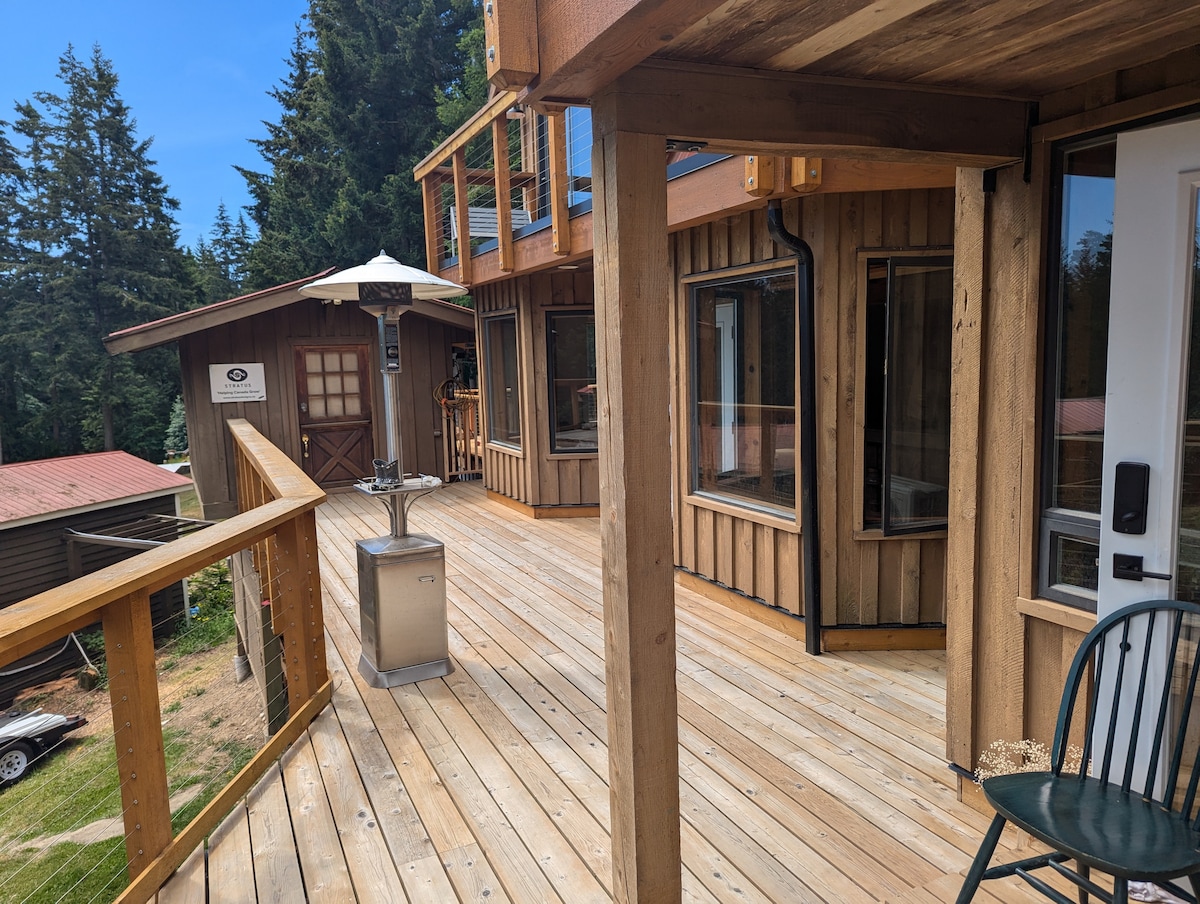 Welcome to Galiano Grow House! A beautiful organic 'ish' farm in a secluded and ideal setting for you and your group to enjoy. This purpose-built and recently renovated cabin has locally harvested wood features, a cozy atmosphere, with plentiful views of the surrounding forest and garden. A sizeable kitchen, 2 large main decks, and balconies off of each bedroom. Fresh veggies/micro-greens with every stay.