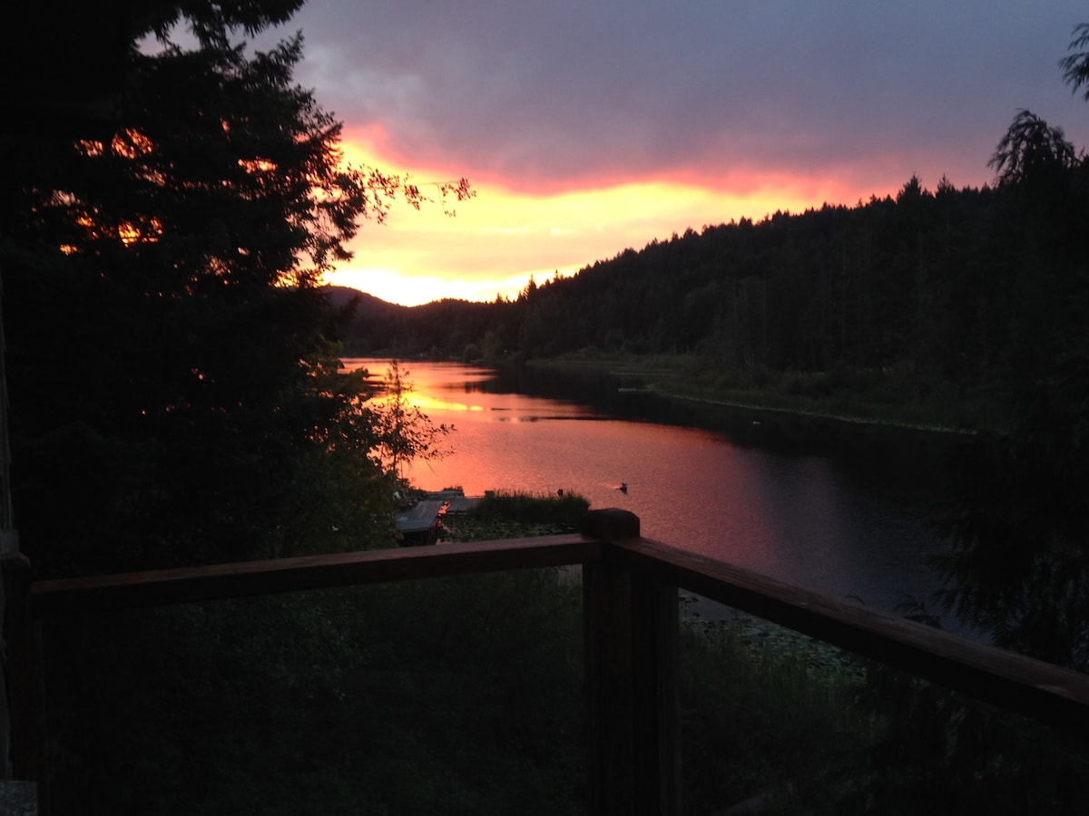 Sat on a bluff by St Mary's Lake and protected by cedar trees, this calm and cozy cottage is the ideal getaway for couples and families seeking rest, relaxation and adventure in the serene setting of Salt Spring's North End. Guests have the benefit of a large deck and private drive off a peaceful residential road within short walking distance (0.5km) of the lake and a short drive from Ganges town centre, Fernwood Beach with pier & cafe and Mount Erskine Provincial Park.