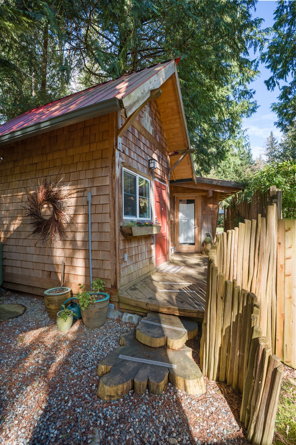 Cedar Bluff is our home on a forested acreage at the edge of wilderness on the beautiful Sunshine Coast, BC. It’s hard to believe we’re just 8 minutes from the Langdale ferry terminal, because it feels like you’re in the remote, coastal backcountry of British Columbia. It’s the perfect, easy getaway from Vancouver and the Lower Mainland. Or the perfect edge-of-wilderness, Canadian experience destination for visitors from further abroad. Wir sprechen Deutsch!
