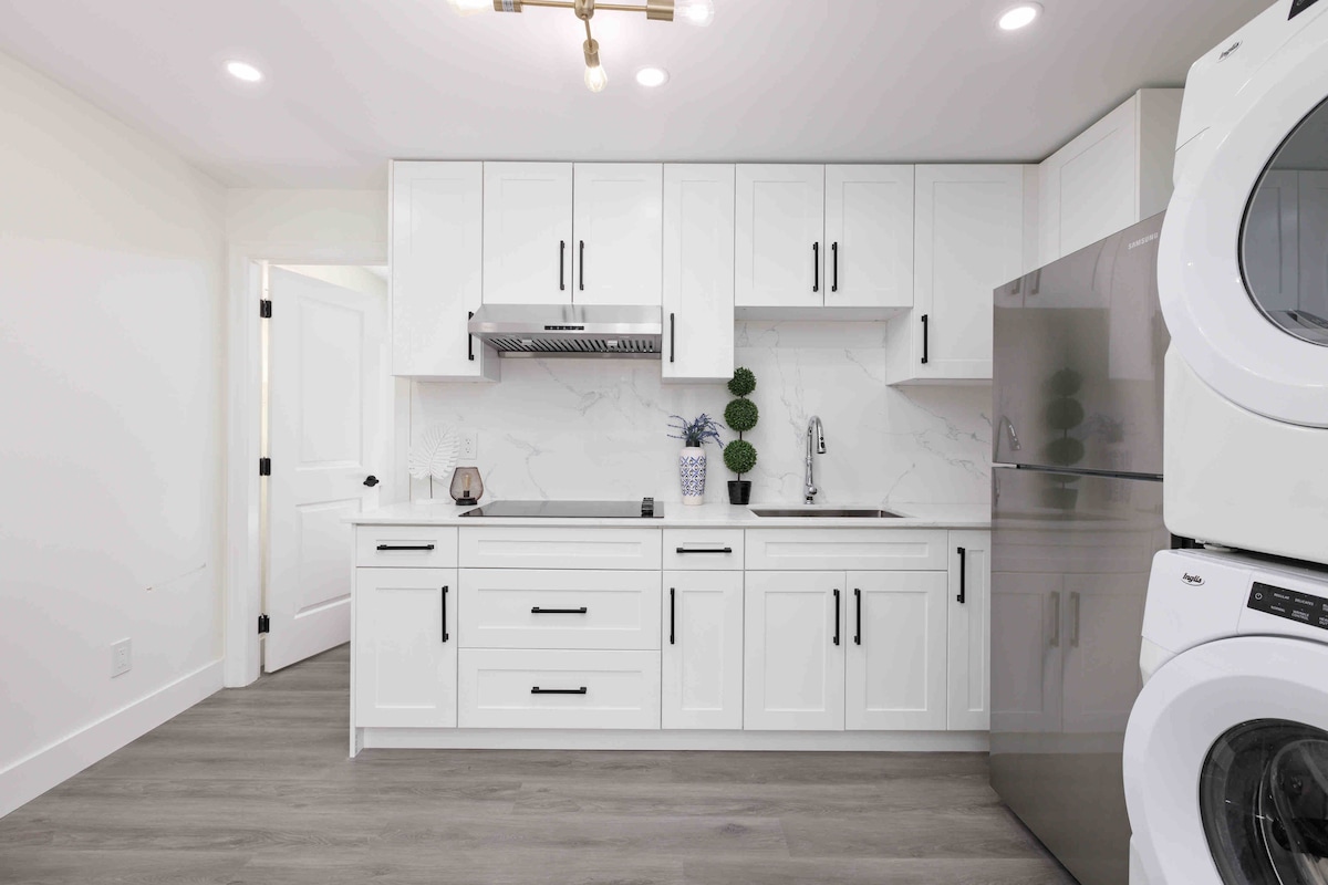 Modern, bright basement studio with queen bed and sofa bed. Fully equipped kitchenette includes cooktop, microwave, kettle, cookware, and flatware. Private bathroom with large walk-in shower and in-suite washer/dryer. Located in a quiet neighborhood near SFU—easy access by foot, transit, or car. Just 30 mins to Downtown Vancouver by car, or 45–60 mins by transit. Clean, comfortable, and stocked with all necessities. Note: We love pets but we DO NOT allow cats.
