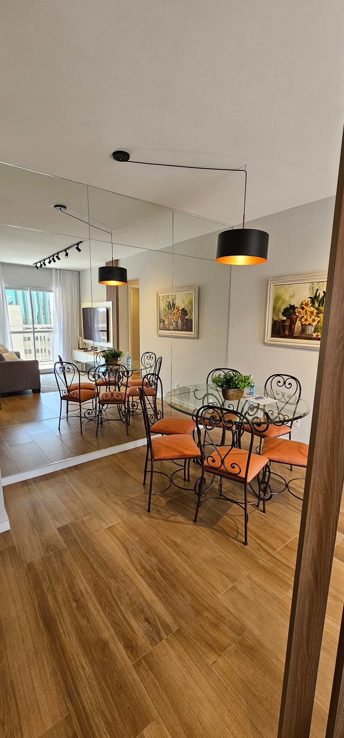 Studio moderno, luxuoso ,de 47m², localizado em condomínio residencial à Rua Duque de Caxias, 880, a passos de distância do Cambuí. Próximo a bares, restaurantes, supermercados, cafés e muito mais. Lindamente decorado e equipado, cama tamanho queen, closet, água quente em todas as torneiras, cafeteria Nespresso, 2 aparelhos de ar condicionado, TV 50" giratória (acesso da sala e quarto), ducha higiênica no banheiro e estação de trabalho para duas pessoas. Condomínio com lazer incrível.