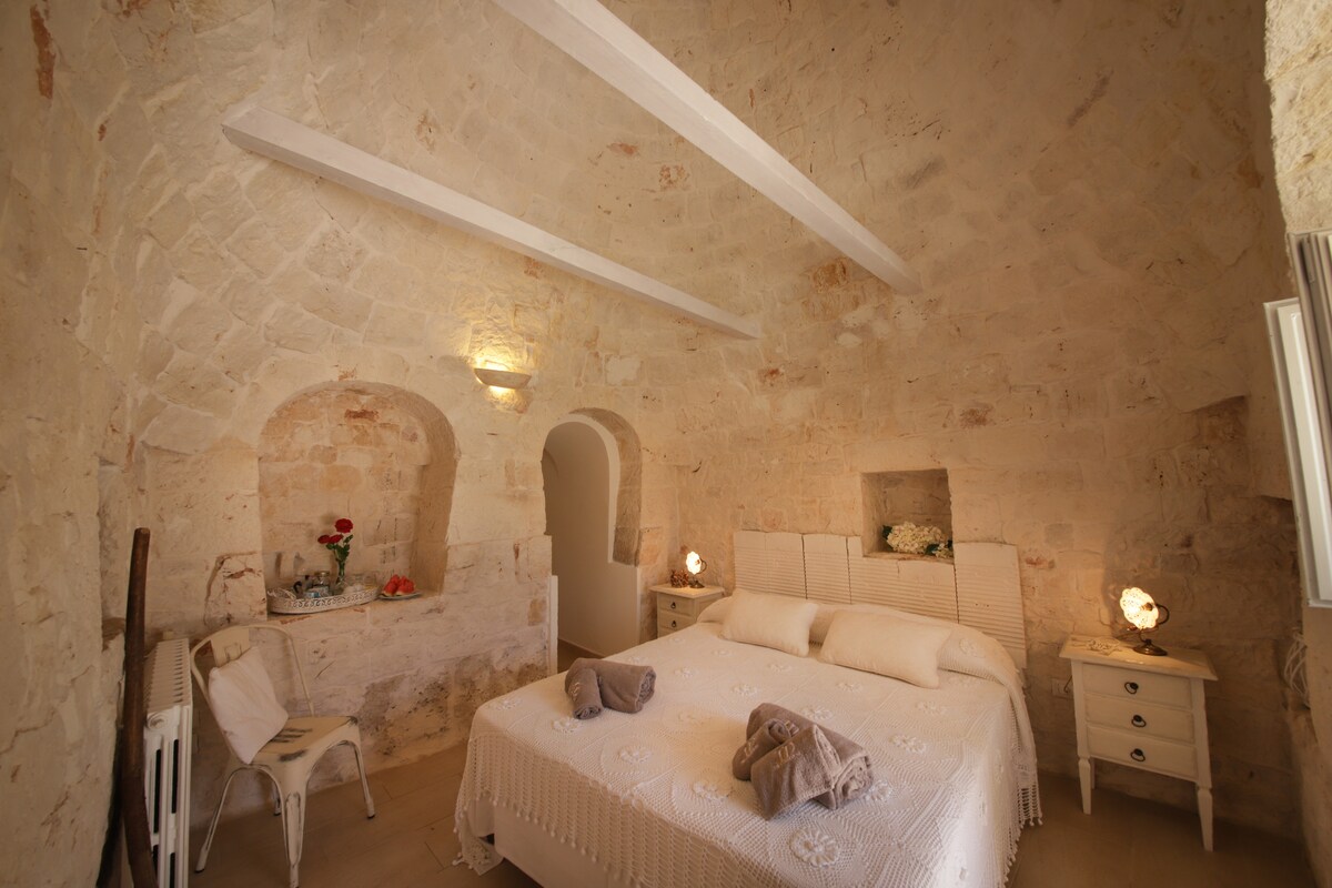 The building is a characteristic "lamia" made of stones with a typical stone roof with " chiancarelle" like the historical down town of martina Franca. We can offer 1 bedroom with bathroom en suite and all confort, can use a wonderful stone pool located in a a panoramic position has the horizon free from buildings and you can enjoy the sunset in an unforgettable way. the pool is available from 1 June to August 31.