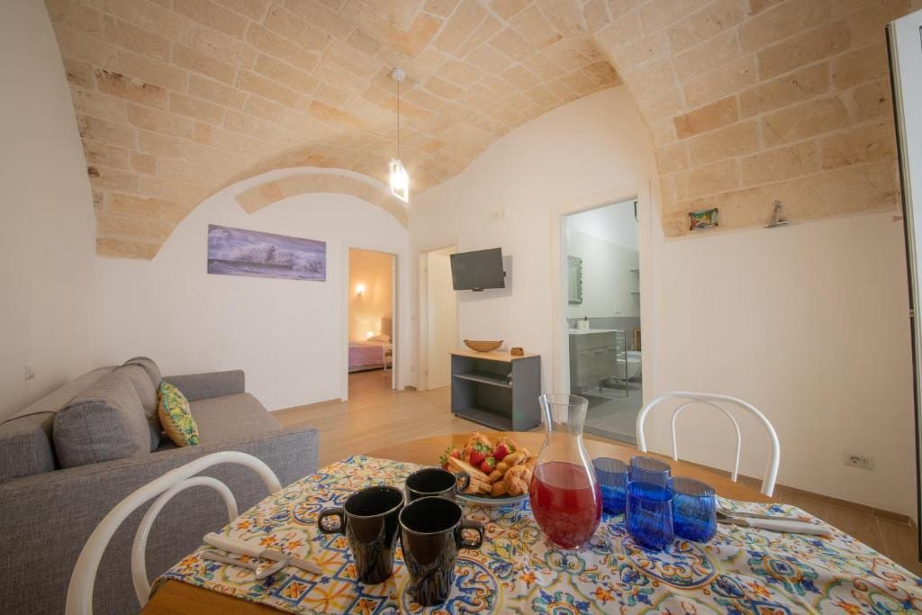 Apt 1 DIVINA indulge in luxury at Palazzo di Lumi Palazzo di Lumi offers 10 apartments and can accommodate up to 20+ guests. Stylishly interior designed and sustainably renovated, each with kitchen, access to SPA with sauna and a pool. Free access to rooftop terrace, and laundry room. Ideal for couples and groups. Perfectly located near Puglia's famous towns, 15 minutes from beaches, 20-25 minutes from Polignano a Mare and Monopoli, and just 30 minutes from Bari airport.