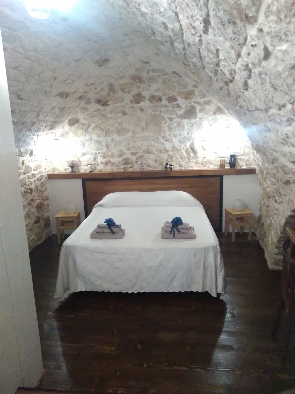 Vivi questo spazio incredibile, ricco di storia, situato in un contesto pittoresco. Al centro di un borgo di mare lontano dal turismo di massa. Pietra bianca naturale tutta intorno alla stanza e per terra la tipica “chianca” (temine medioevale che significa lastra di pietra) antica e originale. Ho cercato di lasciare il tutto più originale e rustico possibile per dare la sensazione agli ospiti di rivivere i tempi antichi in cui in questa camera ci viveva un’intera famiglia di 10 persone.