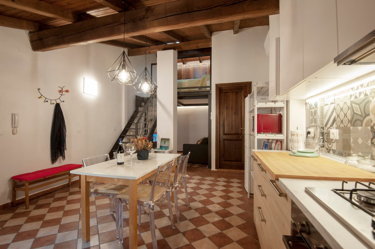 The attic is located in a historic building in the heart of Bologna (Palazzo Murri, it belonged to the famous doctor from Bologna, whose family history was narrated by the director Mauro Bolognini in his "Fatti di gente per bene" with Catherine Deneuve and Giancarlo Giannini). Interesting for charming atmosphere and for its proximity to restaurants, museums, cultural attractions and activities to the familiars, nightclubs and public transports. Suitable for couples, singles and travelers alike.