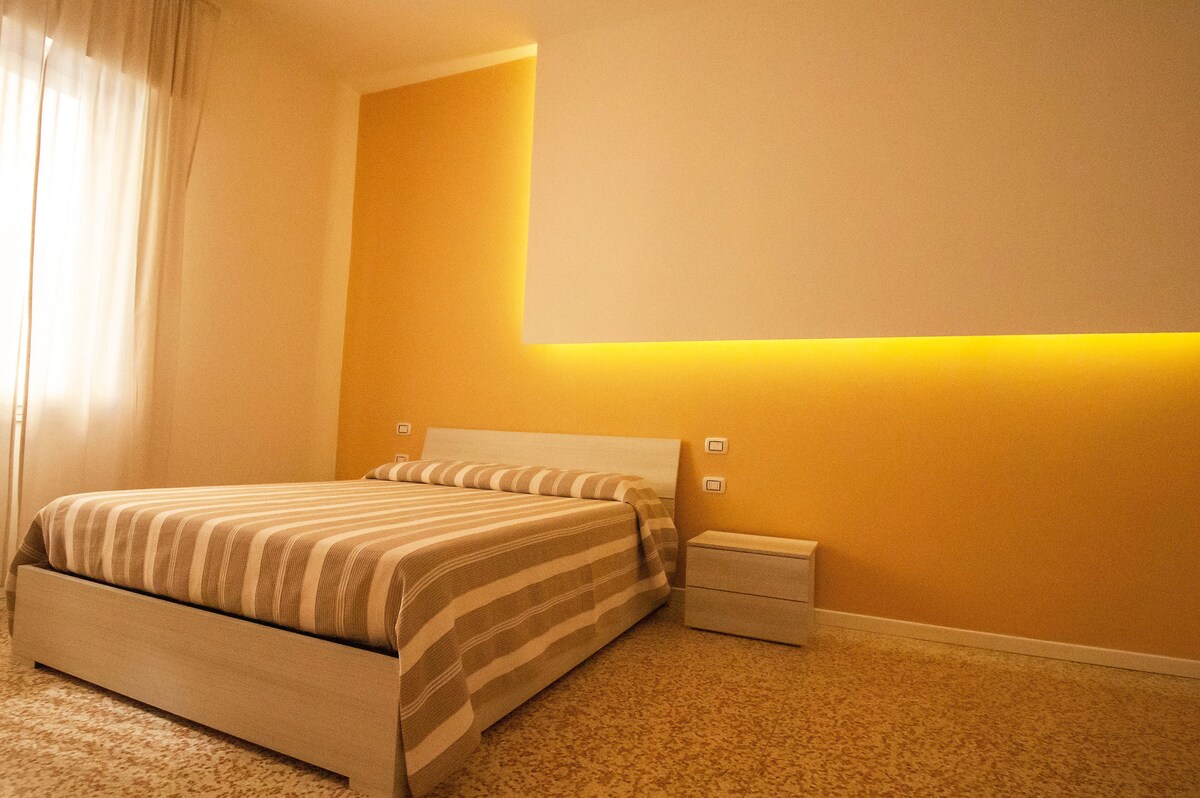 Bellissimo appartamento completamente affrescato e affacciato su ampio giardino. Due camere matrimoniali, ciascuna con bagno. Una camera con letto singolo ed un letto ad una piazza e mezza. Cucina abitabile attrezzata, sala da pranzo, salotto.Piano inferiore home video, ping pong, biliardino, palestra , terzo bagno. L'appuntamento si trova in centro città. Parcheggio pubblico e privato nelle immediate vicinanze. Per soggiorni prolungati tariffe da concordare.