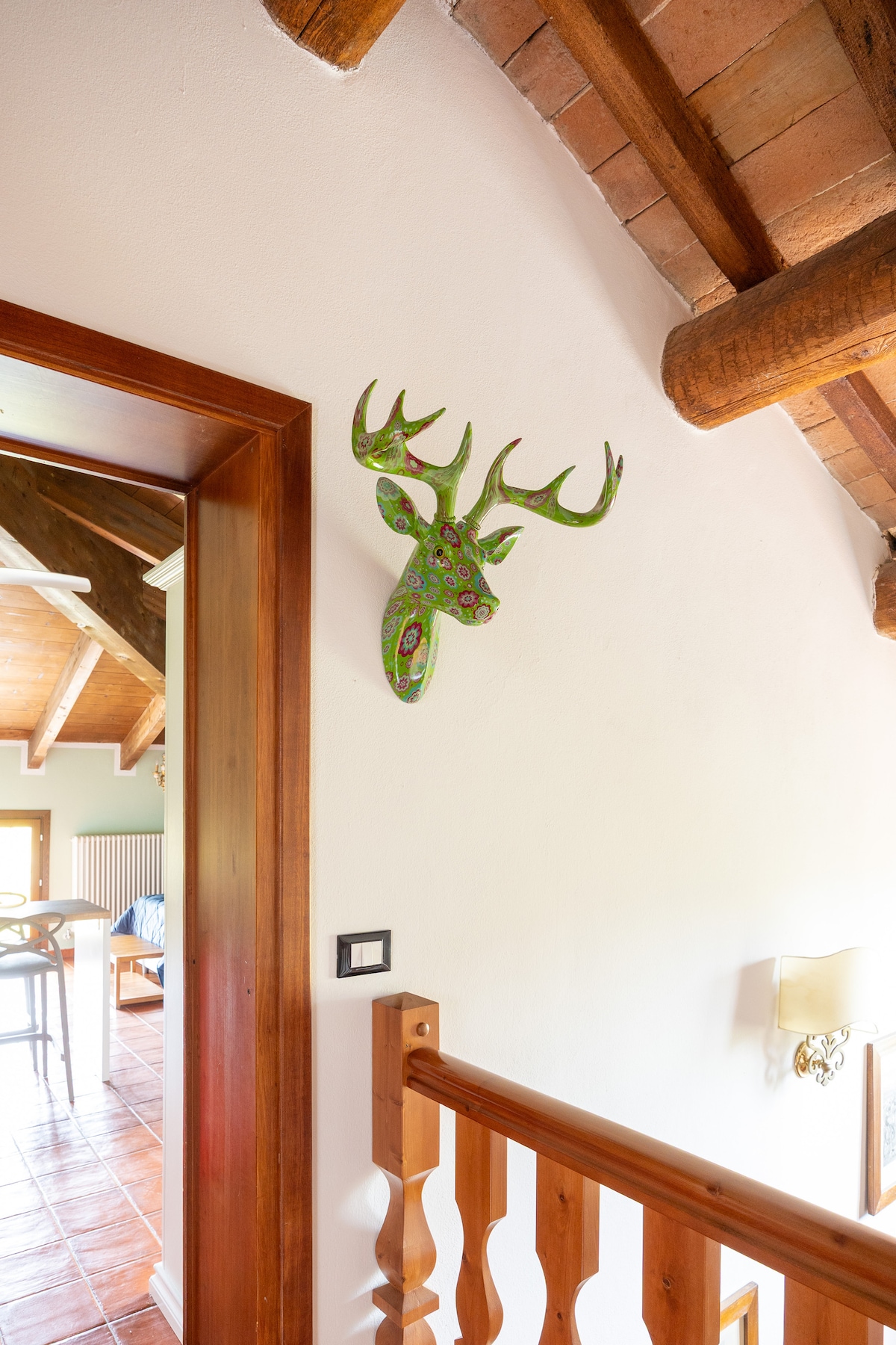 La casa è immersa nella natura, adiacente alla casa dei proprietari. E' un open space indipendente con zona notte soppalcata organizzata in due spazi, dotata di angolo cottura attrezzato, bagno con doccia, soggiorno con tavolo, divano e tv, veranda privata e giardino, con una metratura complessiva di circa 60mq. La casa è pensata per accogliere comodamente 3 persone.