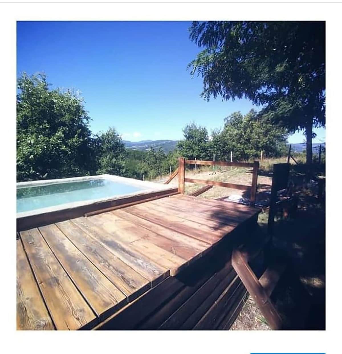 Una pedana in legno sopraelevata sul pendio del versante sud nel nostro orto-giardino sinergico in prossimità di un piccolo lavandeto. Perfetta se ti piace dormire in tenda con un comfort maggiore. La tenda non è inclusa. Tent is not included!