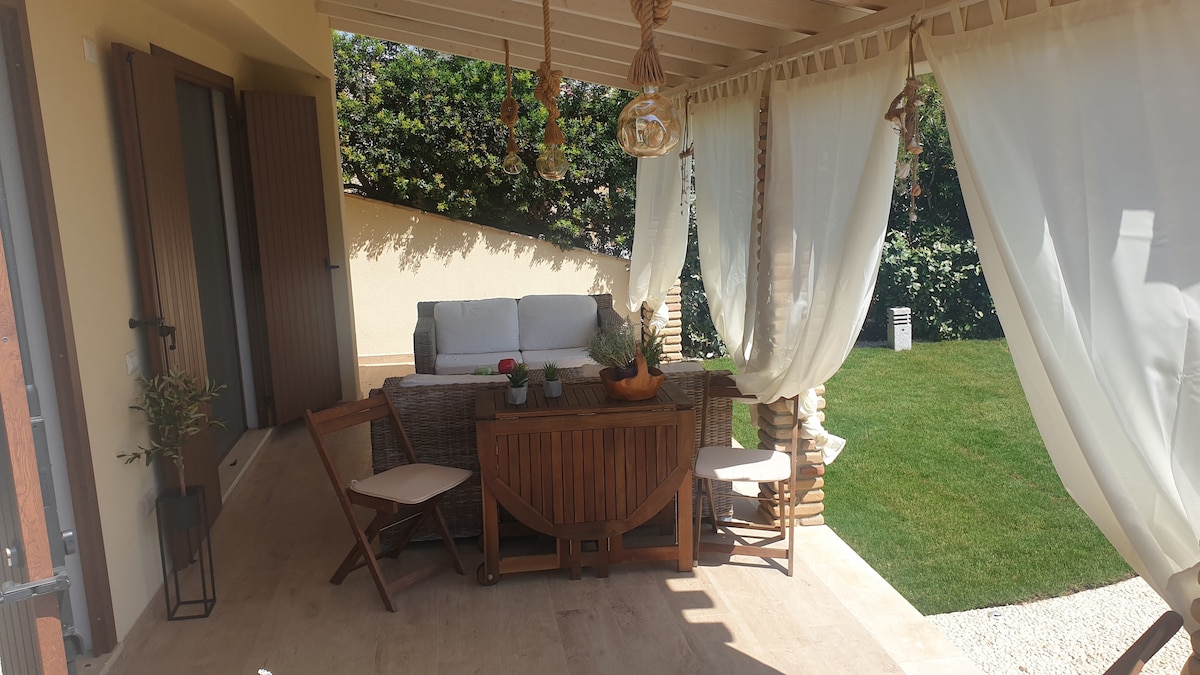 Sara House villino libero su tre lati, inserito in un residence curato di recente costruzione. Dista circa 900m dalla spiaggia, vista mare da mozzare il fiato. La casa è finemente arredata e ben servita, entrando abbiamo una zona giorno open space con cucina abitabile e zona tv, 1 camera matrimoniale, 1 camera con due letti singoli , bagno con doccia . In esterno troviamo un patio grande arredato,doccia con acqua calda, lavatrice, bbq, sdraio e posto auto privato. Giardino di proprietà.