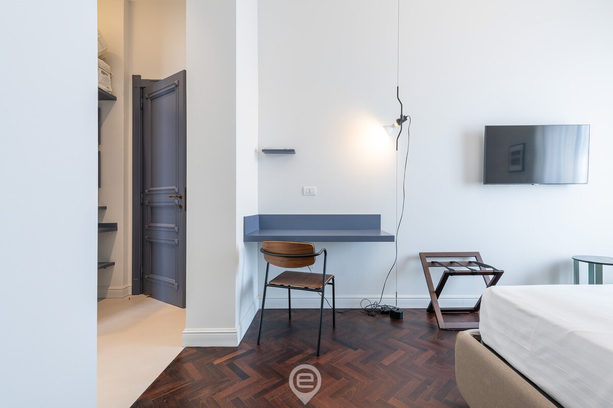 Sweet Dreams 4 located in the heart of Cagliari, is a corner of tranquility and comfort, perfect for those looking for a refuge during a stay in the city. With a surface area of 35 m2, the room is well-organized, bright and welcoming and has a private balcony. The double bed, with soft and quality linens, is the protagonist of the room. Surrounded by white and modern furniture, it conveys a feeling of lightness and order.