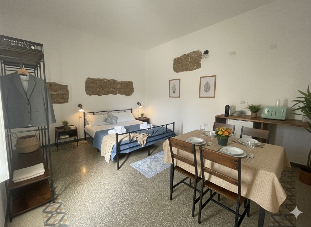 Exclusive location in Cagliari: just steps from train and bus stations and the main street, with a window overlooking the Port. The room, perfect for both work and relaxation, features TV, wardrobe, desk, air conditioning/heating, kettle and coffee machine. Direct access by elevator. Nearby you’ll find all essential services and plenty of choice: supermarkets, cafés, pizzerias, restaurants and fast food, all within easy walking distance.