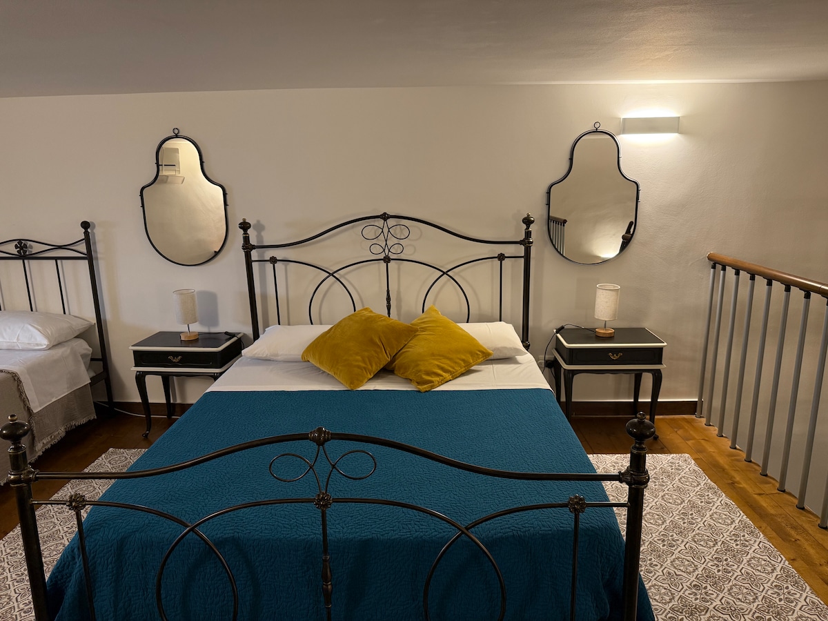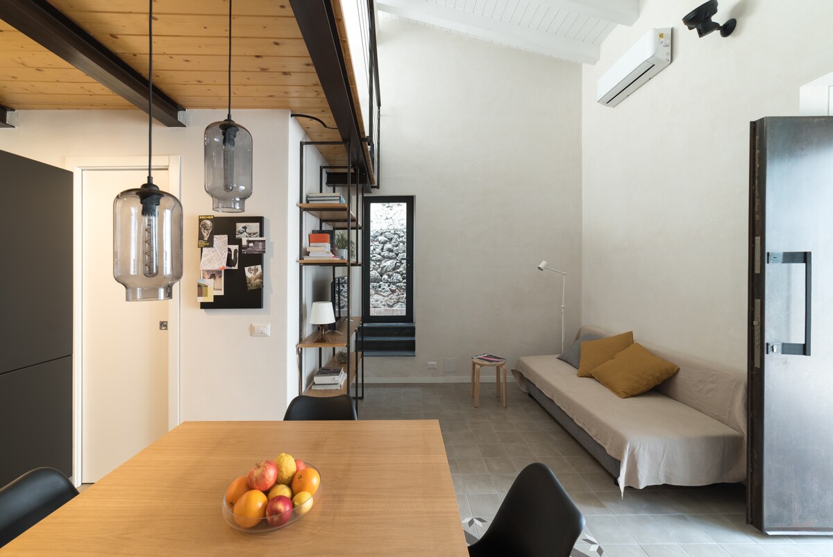 Si tratta di un moderno loft, nel cuore di una villa dei primi del Novecento. È stato appena restaurato e arricchito dalla presenza di mobili antichi. La zona giorno a piano terra con il divano letto e il camino funzionante; la zona notte si trova al piano di sopra, arricchita dall’utilizzo di un pavimento in castagno dell’Etna. Ampio antibagno con armadi su misura a scomparsa, moderno bagno con doccia extralarge. Spazi esterni ampi, giardino e piscina.