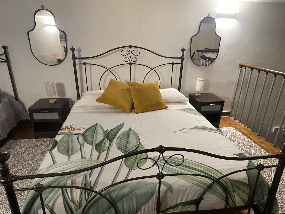 Si tratta di un moderno loft, nel cuore di una villa dei primi del Novecento. È stato appena restaurato e arricchito dalla presenza di mobili antichi. La zona giorno a piano terra con il divano letto e il camino funzionante; la zona notte si trova al piano di sopra, arricchita dall’utilizzo di un pavimento in castagno dell’Etna. Ampio antibagno con armadi su misura a scomparsa, moderno bagno con doccia extralarge. Spazi esterni ampi, giardino e piscina.
