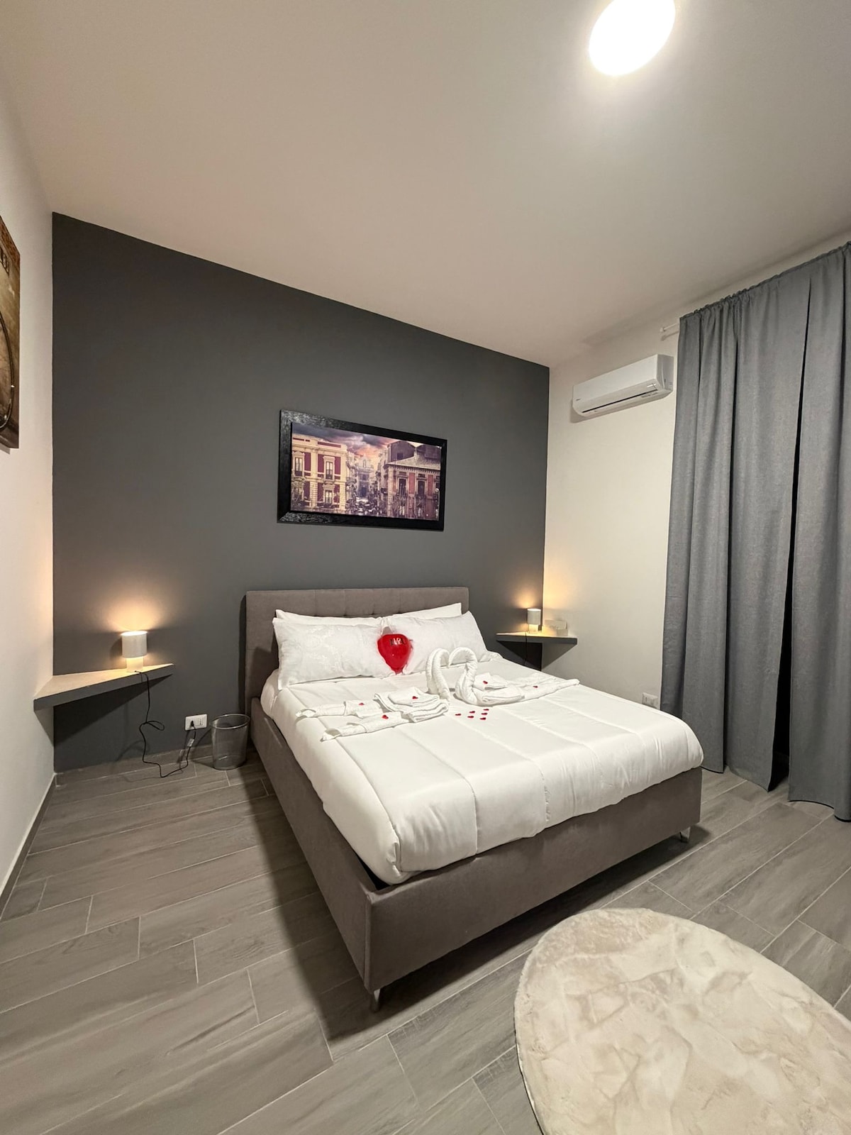 Monolocale indipendente al piano terra con mini SPA in camera (vasca idromassaggio, sauna e doccia emozionale). Servizio bagno turco con cromoterapia a pagamento (20€ a notte), da richiedere subito dopo la prenotazione e da pagare direttamente in struttura. Welcome drink in omaggio! Zona cottura con piano a induzione, macchina del caffè e bollitore, un bagno ed un balcone su cortile interno. Ci troviamo nella via più lunga e antica di Catania, in pieno centro storico.