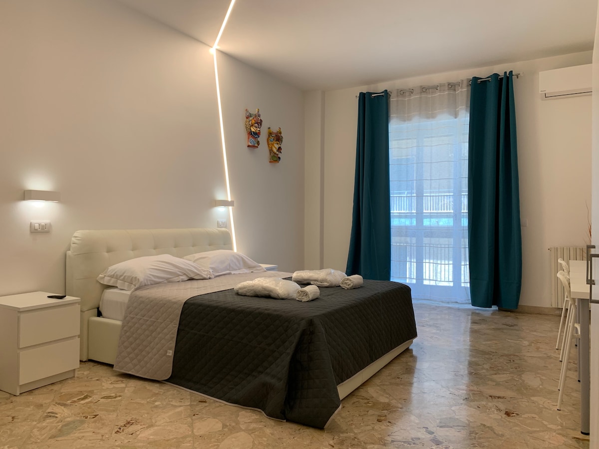 Studio Apartment suitable for both short and long stays. It is located in a residential context in Catania, a few meters from the center, our apartment is equipped with all the comforts to make you feel at home. You will have a fully equipped kitchen (microwave, kettle, dishwasher, induction stove, fridge), private bathroom with shower, equipped terrace where you can spend the days in total privacy. Contact us for long stays. We ask for a security deposit when you check-in.