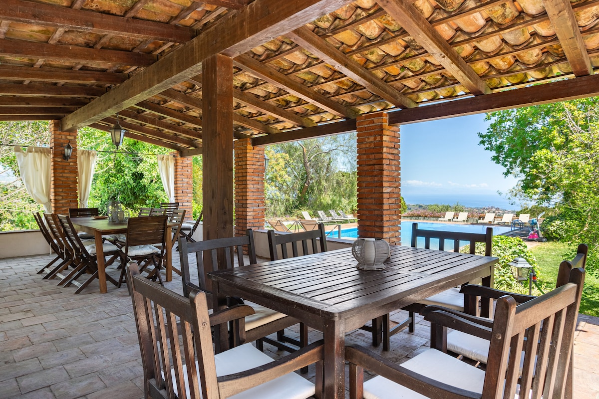 Top-notch Sicilian villa with a pool, volcano view
