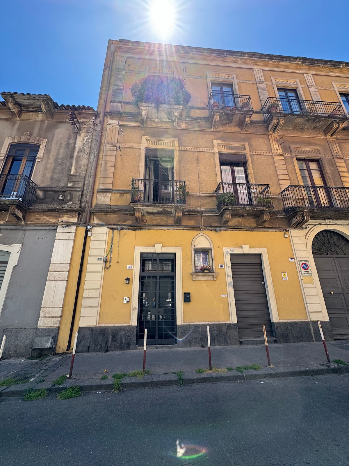 Placed into the core of the old city, between Via Etnea, Via A. di Sangiuliano e Piazza Stesicoro, between artisan workshops, prominent restaurant, traditional trattorias, refined café, between the elegant Opera Theater Massimo Bellini and the biggest open air market of the city, the house (to which you can access with an elevator) is at the last floor of an ancient liberty building of the very first XX century, with high painted ceiling with vault and original decorated floor.