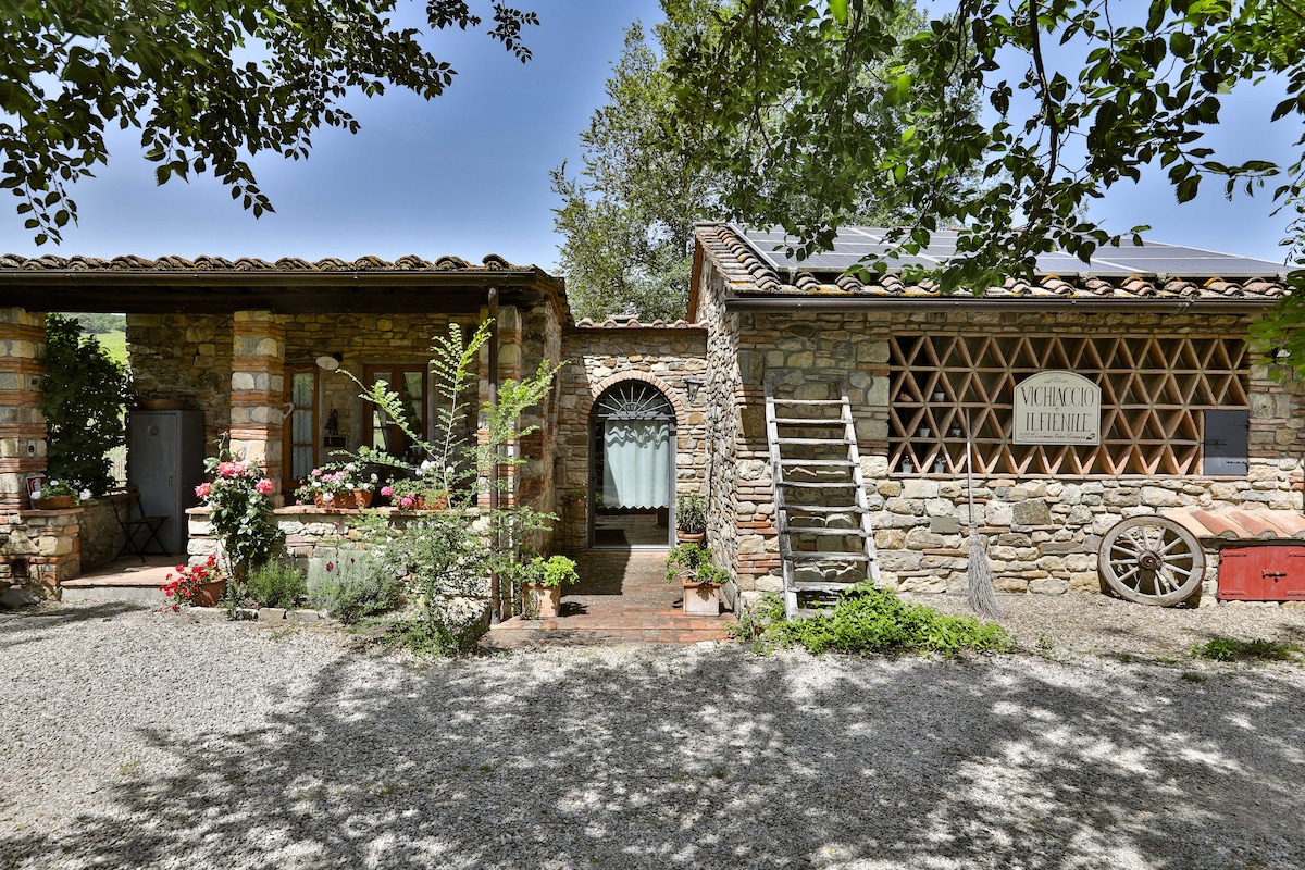 Spend a holiday in the heart of the Tuscan countryside in this cozy stone house with terracotta floors and beamed ceilings in solid oak, furnished with paintings of author , equipped with all comforts. Enjoy yourself by swimming in the large infinity pool (18m X 9m, open from May 1st to October 15th for guests of Stone house use only) or relax in an armchair under the loggia, tasting a glass of Chianti wine in front of the rolling hills of vineyards, olive groves, woods and medieval villages.