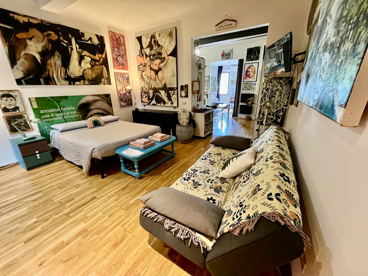 Enjoy a real art experience at Casa dell'Artista, the perfect place for your holiday in Florence – a spacious and modern open space, bright and equipped with every comfort. Located in one of the most traditional districts of the old town, it’s the perfect choice for families, couples and friends (rooms are separated but not closed by doors). Here you will enjoy a unique stay, surrounded by the artworks of host and painter Annalisa and a few steps from Florence’s most popular attractions.