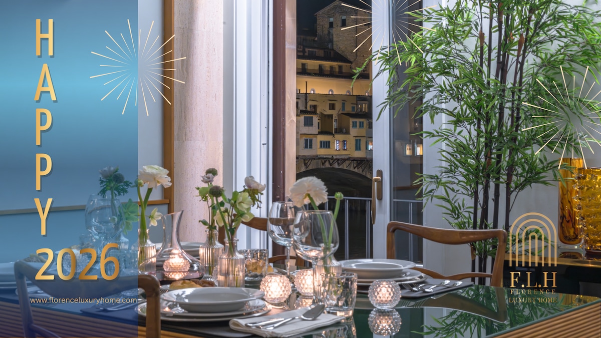 L'appartamento ha una posizione e una vista magnifica sull'Arno, il Corridoio Vasariano e il Ponte Vecchio. Si trova al secondo piano di un edificio nel cuore del centro storico, è stato recentemente ristrutturato per avere ogni comfort ed è stato elegantemente arredato con mobili e lampade di design dal proprietario Giovanni, noto antiquario di design del XX secolo. Un perfetto bilanciamento fra classico e moderno, lusso ed eleganza, design e comfort, minimalismo e cura dei dettagli.