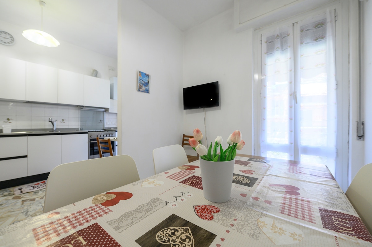All discounts are already included, please go ahead and book the property if your travel dates are available. Below please see all the listing details "Giacomo", 2-room apartment 40 m2 on 3rd floor. Fully renovated in 2023, practical and modern furnishings: living/dining room with 1 sofabed (140 cm), TV. 1 double bedroom with 1 double bed. Exit to the balcony. Kitchen (2 induction hot plates, microwave, electric coffee machine). Exit to the balcony. Shower/bidet/WC.