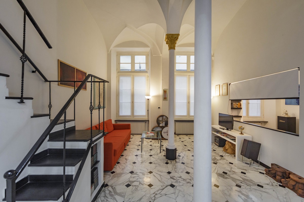 This completely restructured modern apartment, located in the middle of the historic centre of Genoa, presents itself as an open space with a loft, equipped with a queen sized bed, while in the living room there is a sofa bed. Equipped with every type of comfort, it's ideal for couples or families. Nearby there are supermarkets, shops of every kind, cafés, traditional restaurants, focaccia bread shops, metro and bus stops.